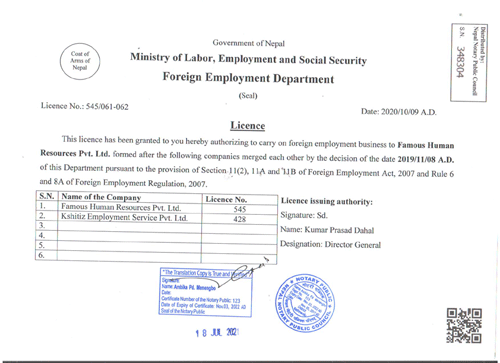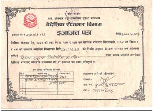 Employment License (Original, Nepali) |