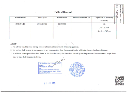 Employment License with Renewal Status (Original Nepali) |