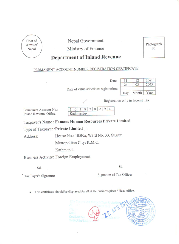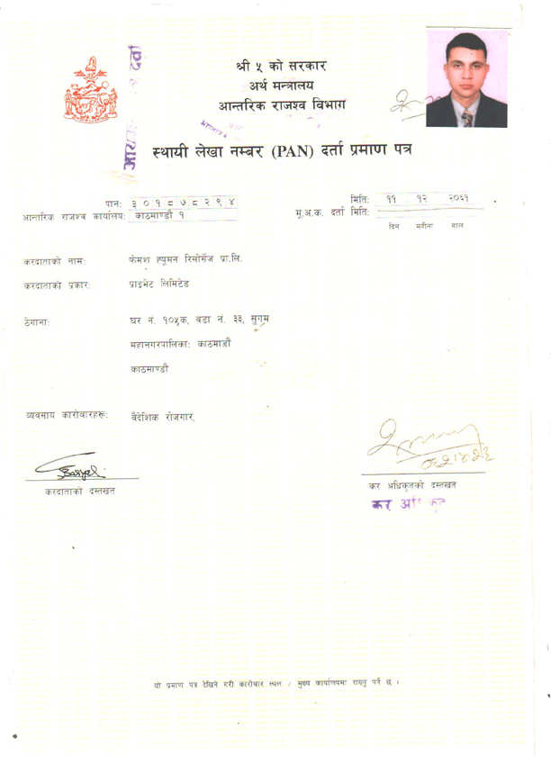 Tax Registration (PAN-Original, Nepali) |